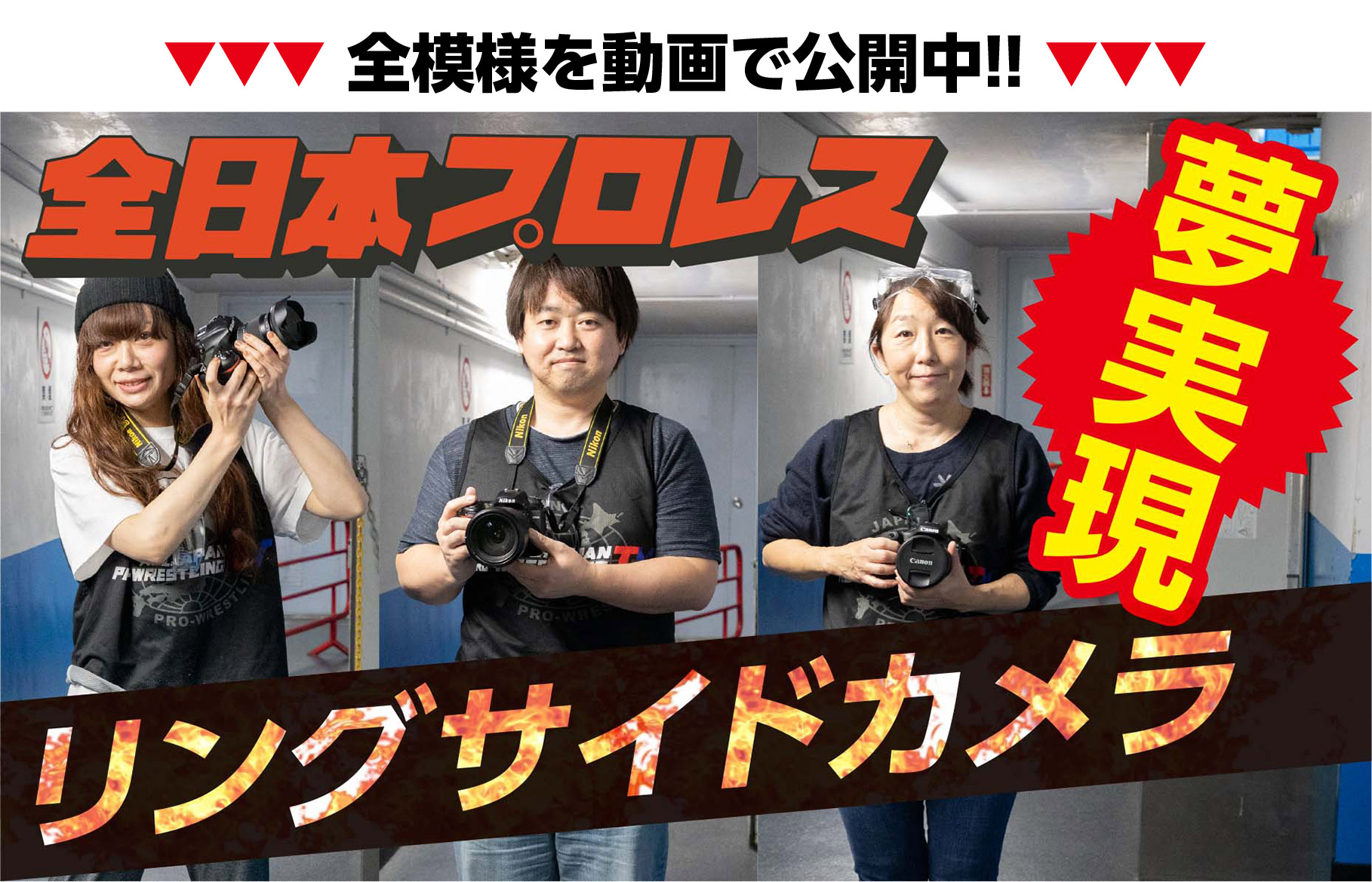 この舞台に一般応募から選ばれた3人の夢、リングサイドから写真を撮りたい!という熱い想いを全日本プロレスと夢かなえます!PROJECTが受け止め、夢をかなえました。
